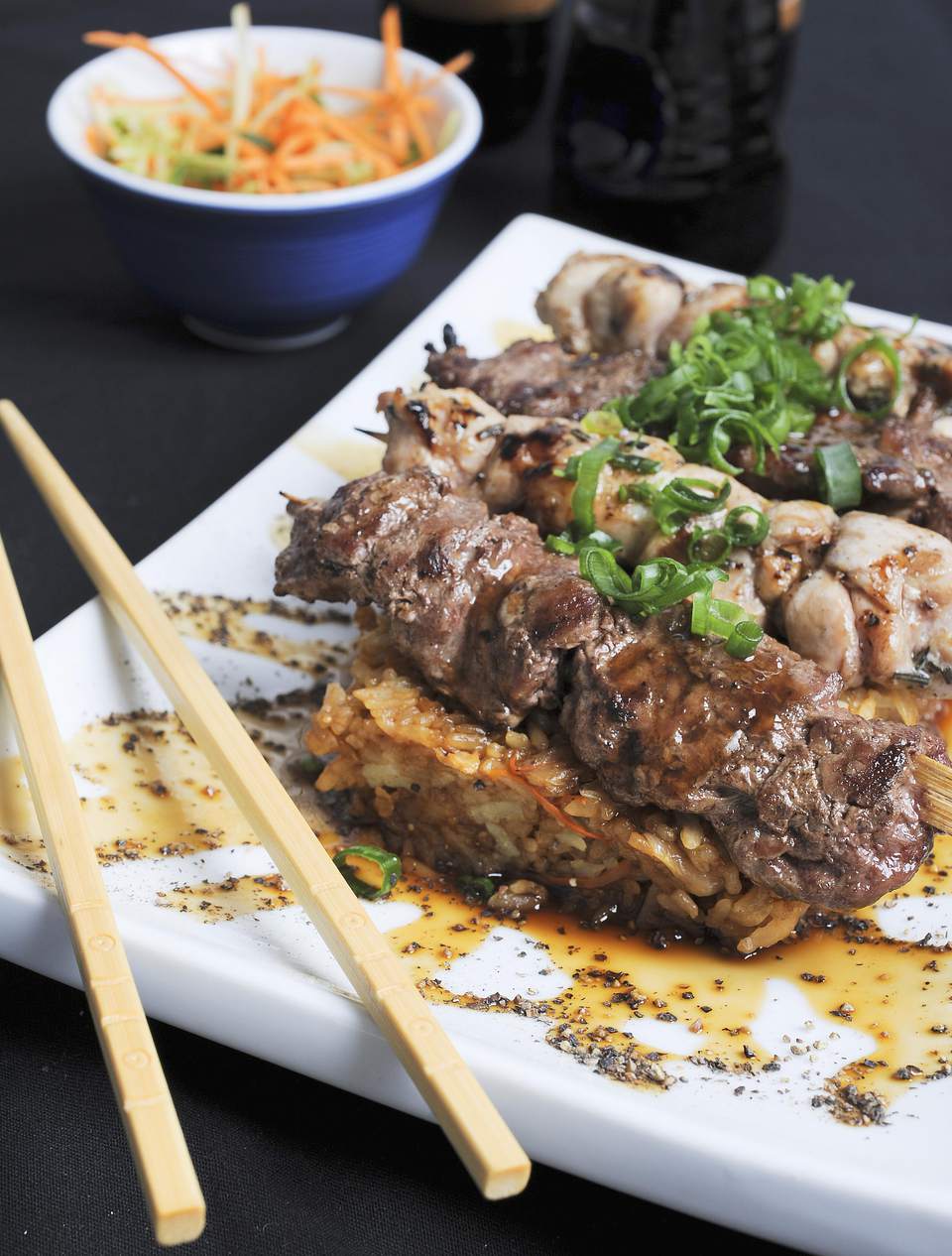 - Prepare marinades for the beef and veggie kebabs, and sauce for chicken thighs